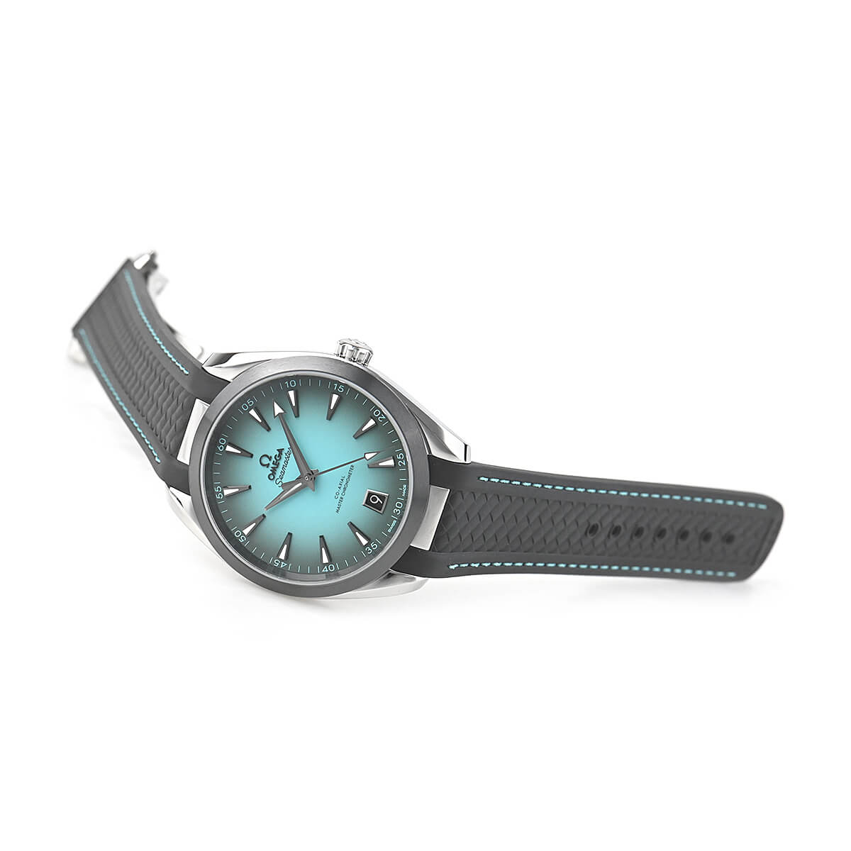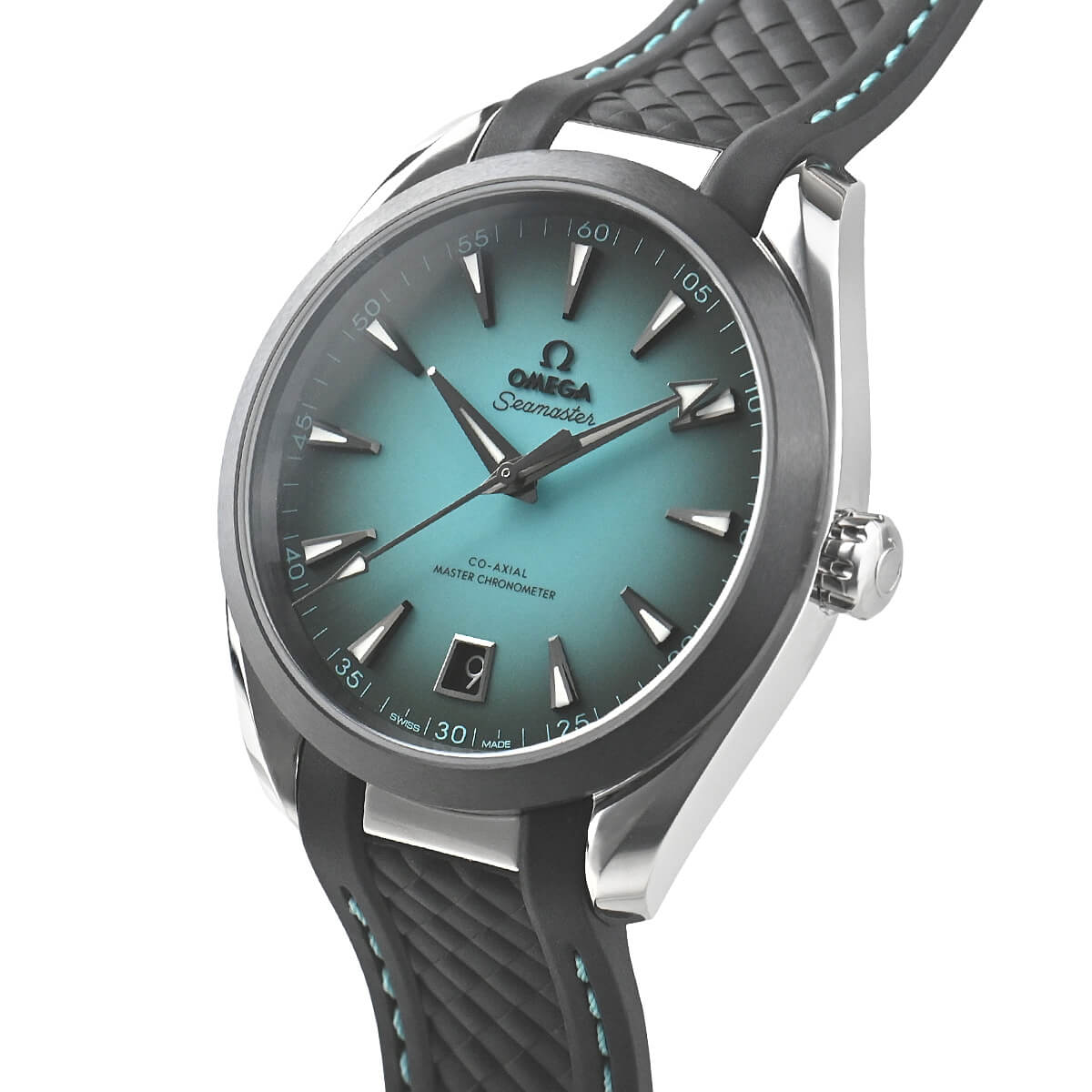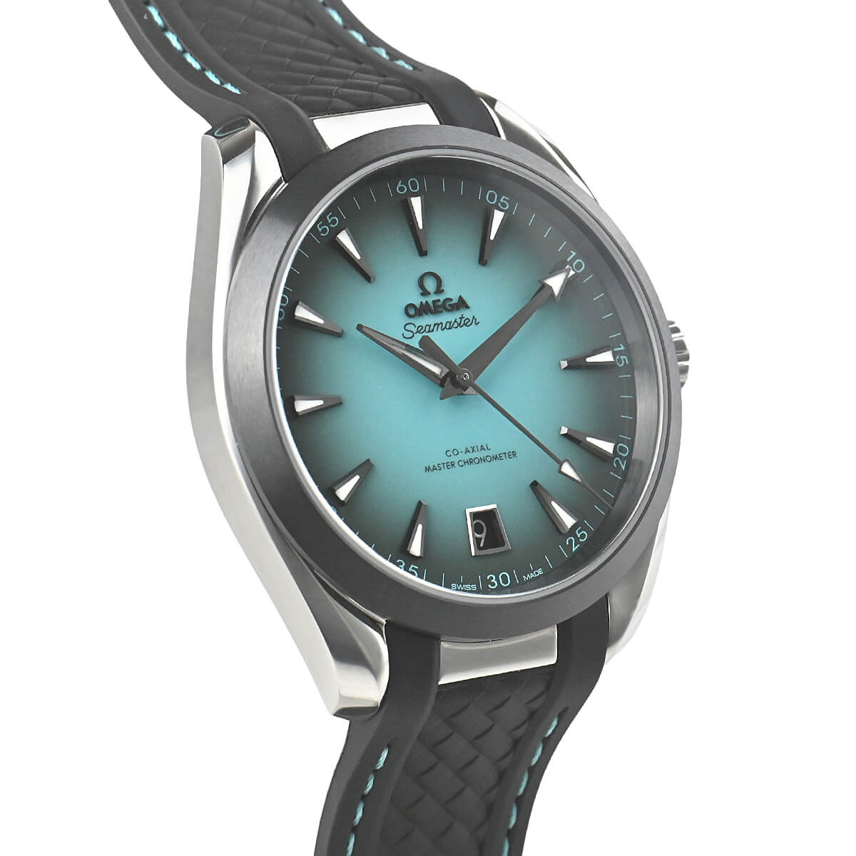 歴史あるペットネーム「シーマスター」を継承する「シーマスター アクアテラ 150M」。非常に美しく眼を惹くターコイズカラー文字盤を採用したケース径41mmのモデルです。ムーブメントはMETAS認定マスタークロノメーターのコーアクシャルキャリバー8900を搭載します。