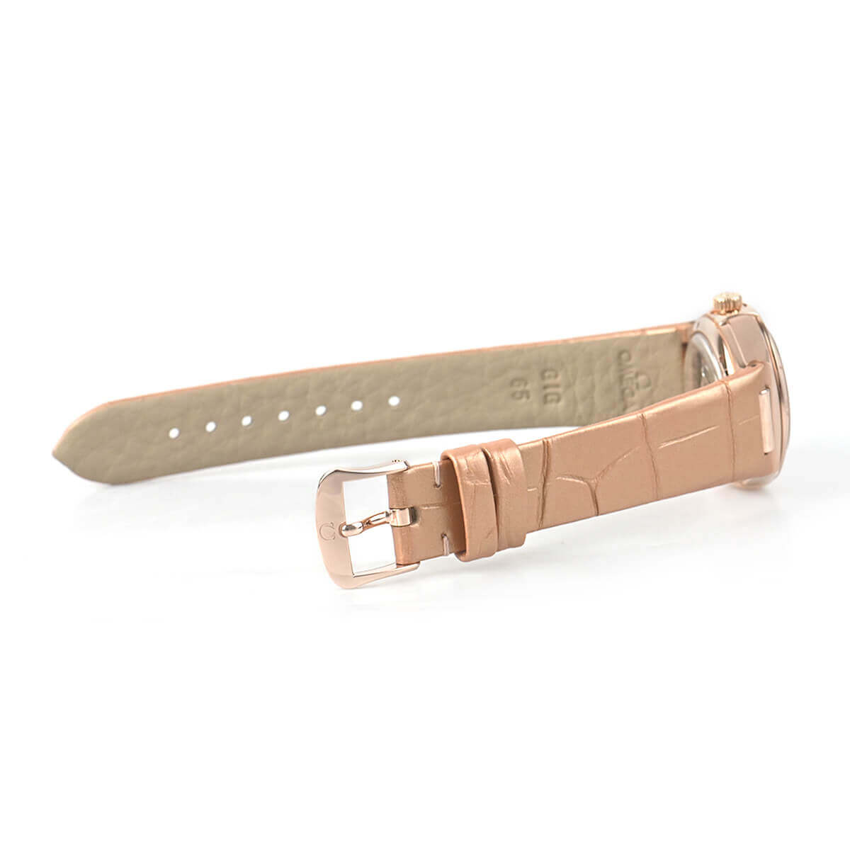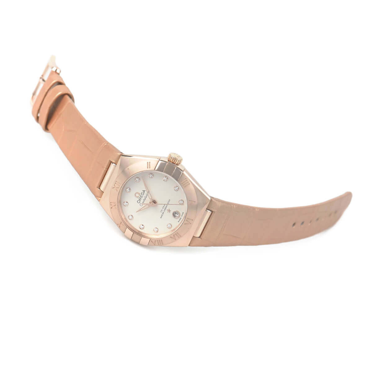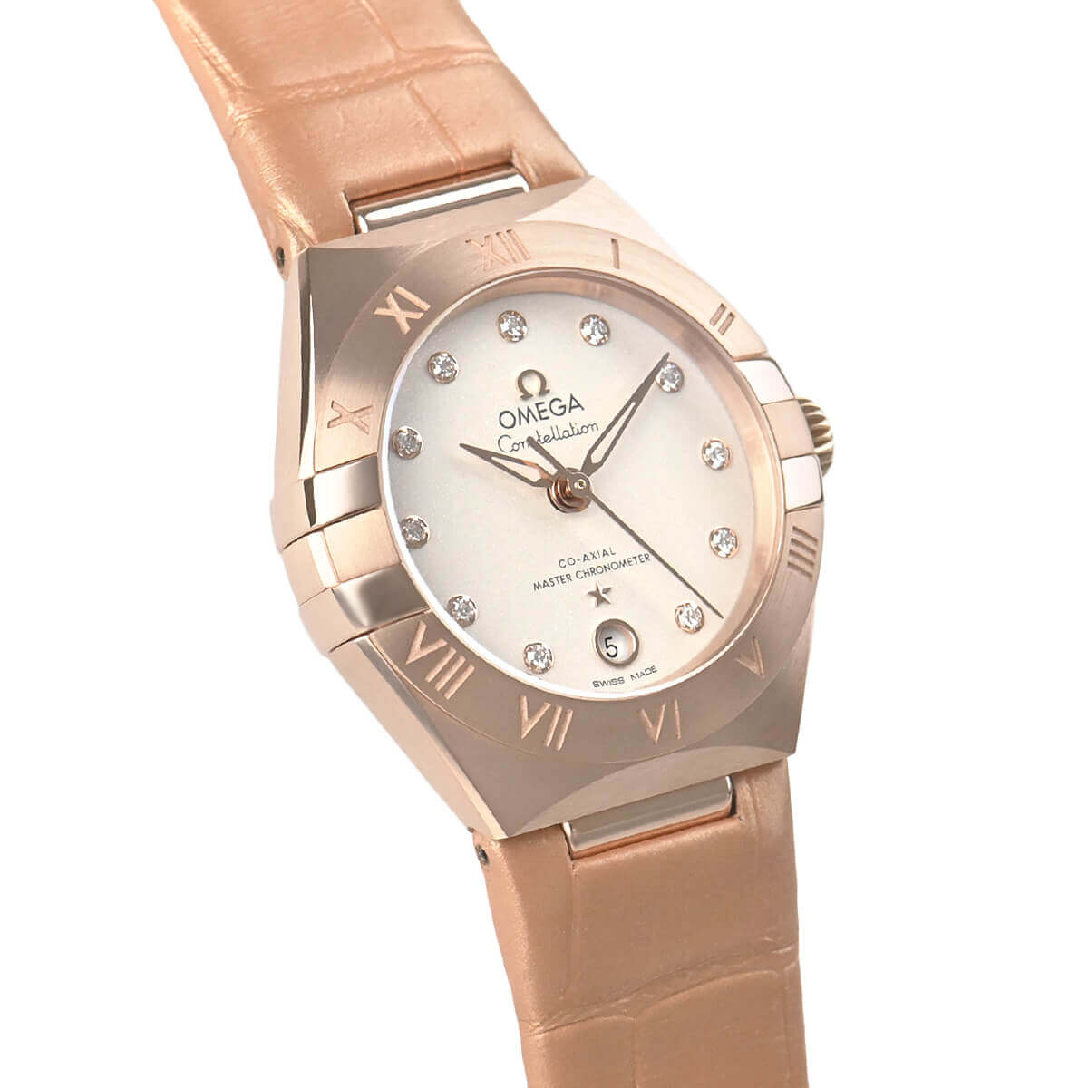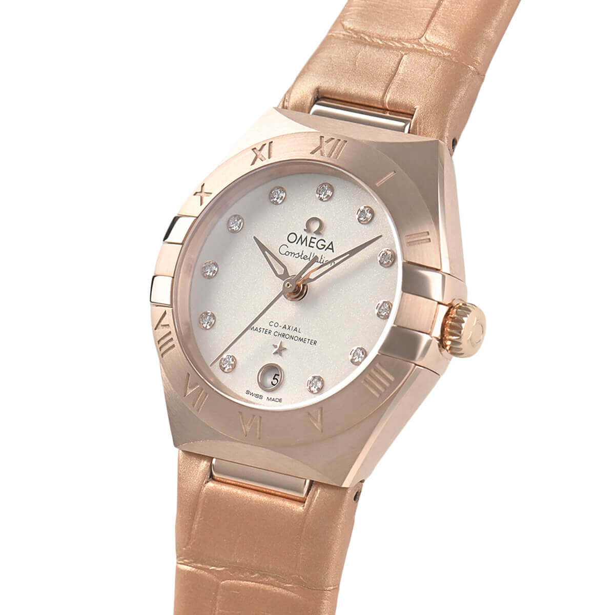 1982年にアイキャッチとなる「爪」を3時と9時位置に採用した【コンステレーション】が、細部にわたりアップデートされました。こちらは29mmケースモデルとなり、使い勝手の良いシルバーカラーのダイアル6時位置にはデイト表示機能を備えます。文字盤にはダイヤモンドをセッティングしておりセドナゴールドケースとの相性が華やかな印象です。