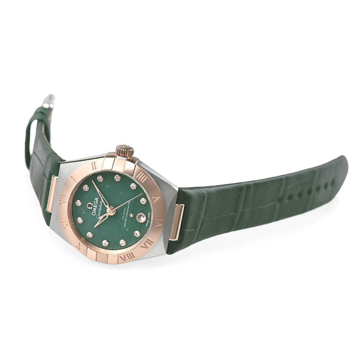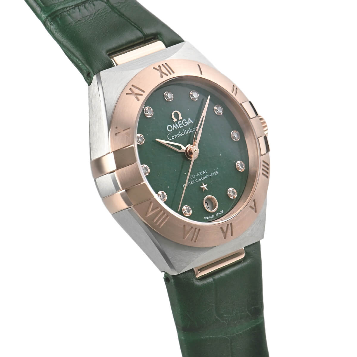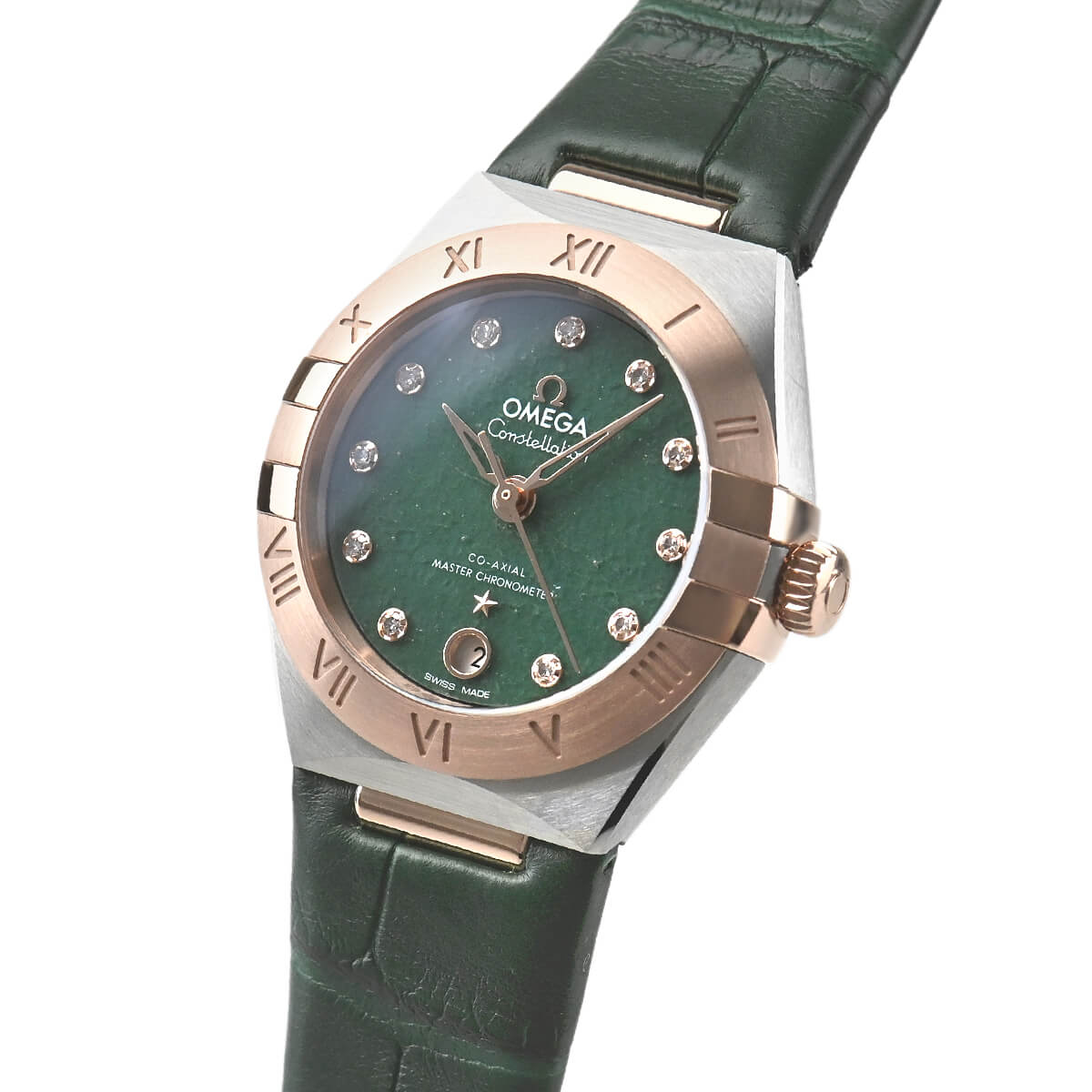 文字盤は天然石のグリーンアベンチュリンを採用し、11ポイントのダイヤモンドをセットした、上品で洗練されたタイムピースです。