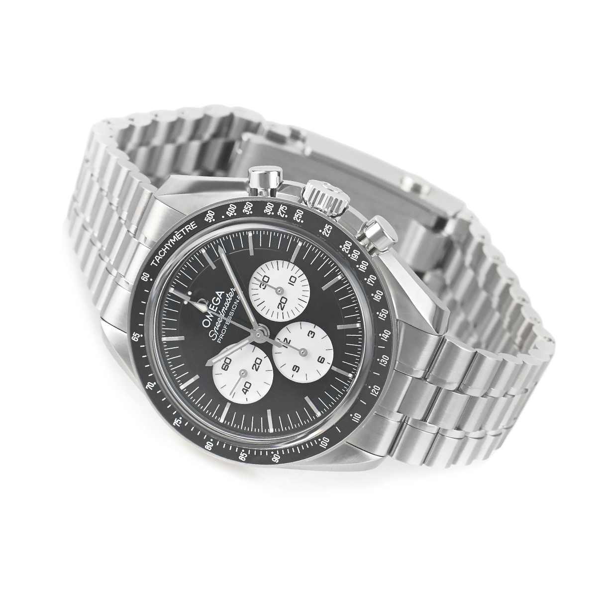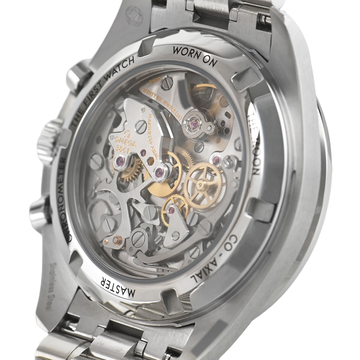 6度に渡る月面着陸プロジェクトの全てに提携された、伝説のクロノグラフ「スピードマスター プロフェッショナル」。こちらの【310.30.42.50.01.004】は、表側にサファイアクリスタル、裏蓋にもサファイアクリスタルガラスのシースルーバックを採用。ムーブメントには、METAS認定のマスタークロノメーターのキャリバー3861を搭載。