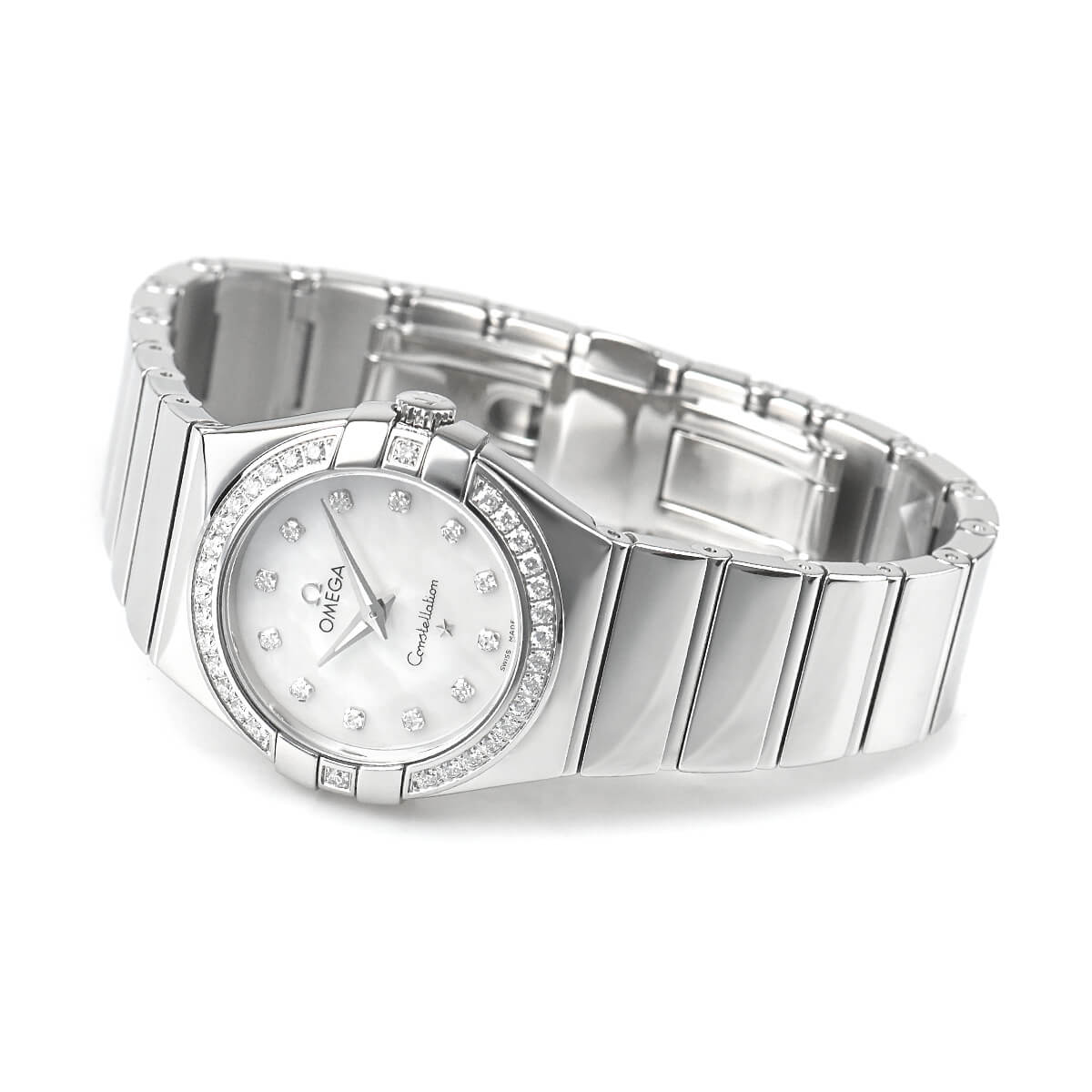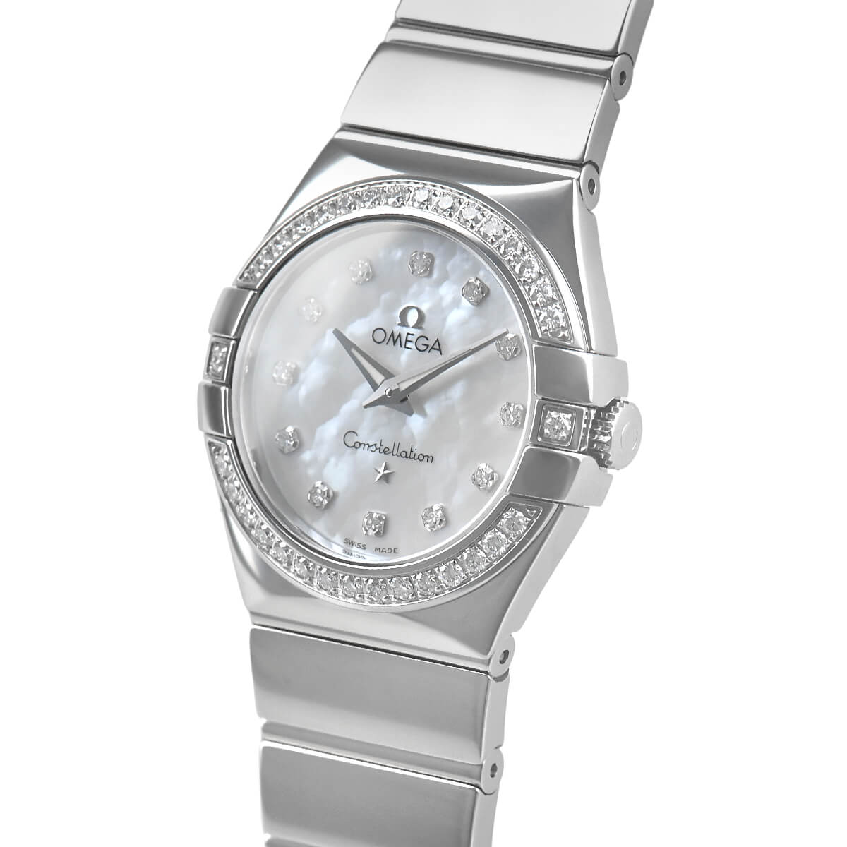 ホワイトシェルのダイヤルには12ポイントのダイヤモンドがセッティングされ、華やかな雰囲気を演出します。