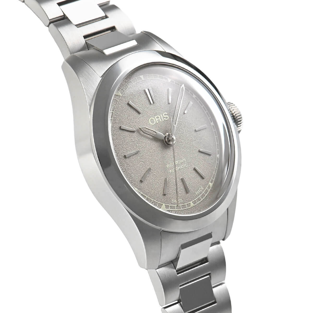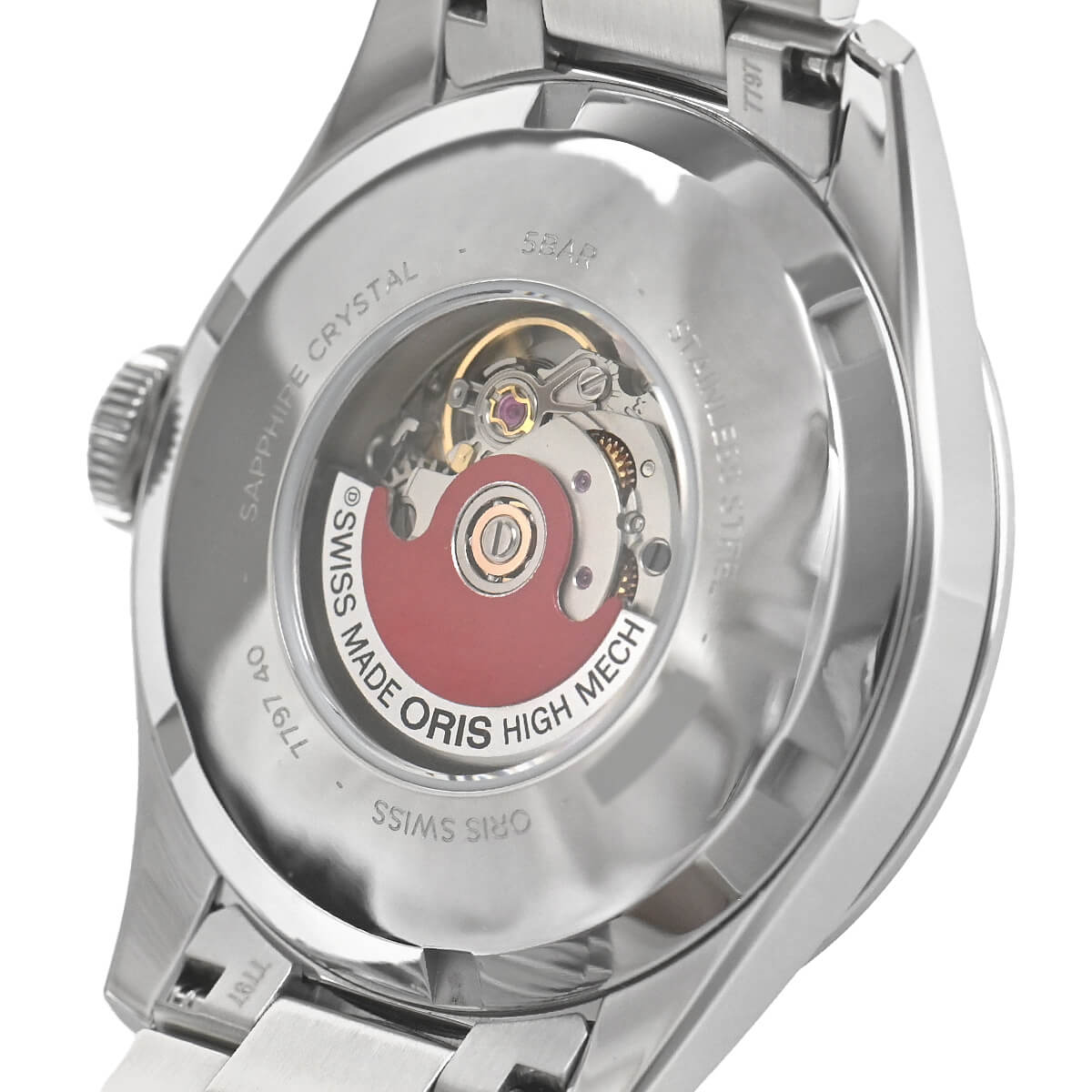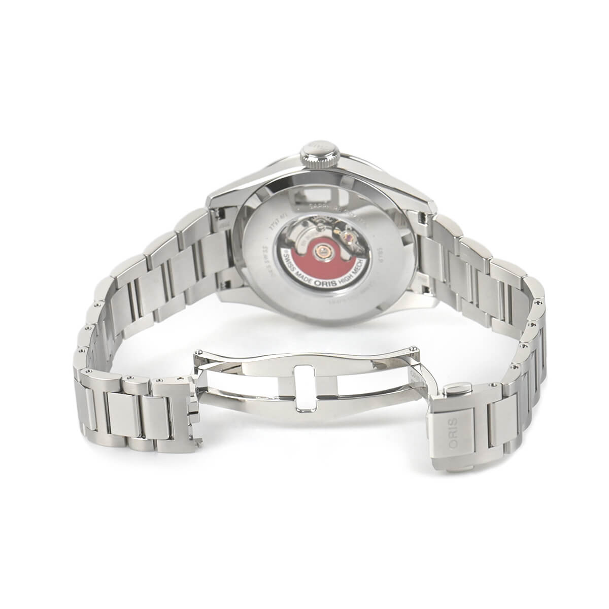 オリスの定番モデル「ビッグクラウン 」。シンプルなデザインで視認性に優れ、シースルバックからはムーブメントを眺める事が出来ます。