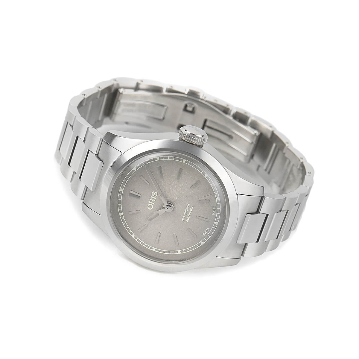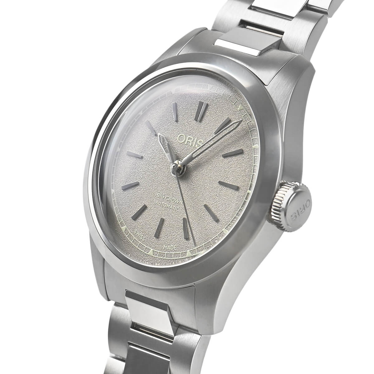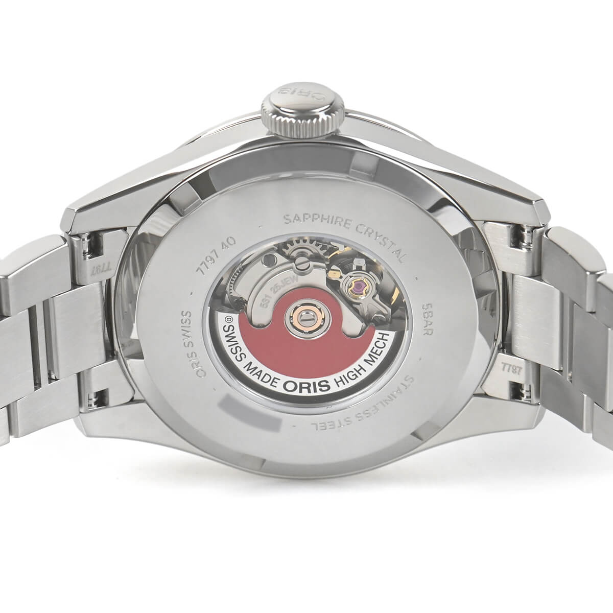 オリスの定番モデル「ビッグクラウン 」。シンプルなデザインで視認性に優れ、シースルバックからはムーブメントを眺める事が出来ます。