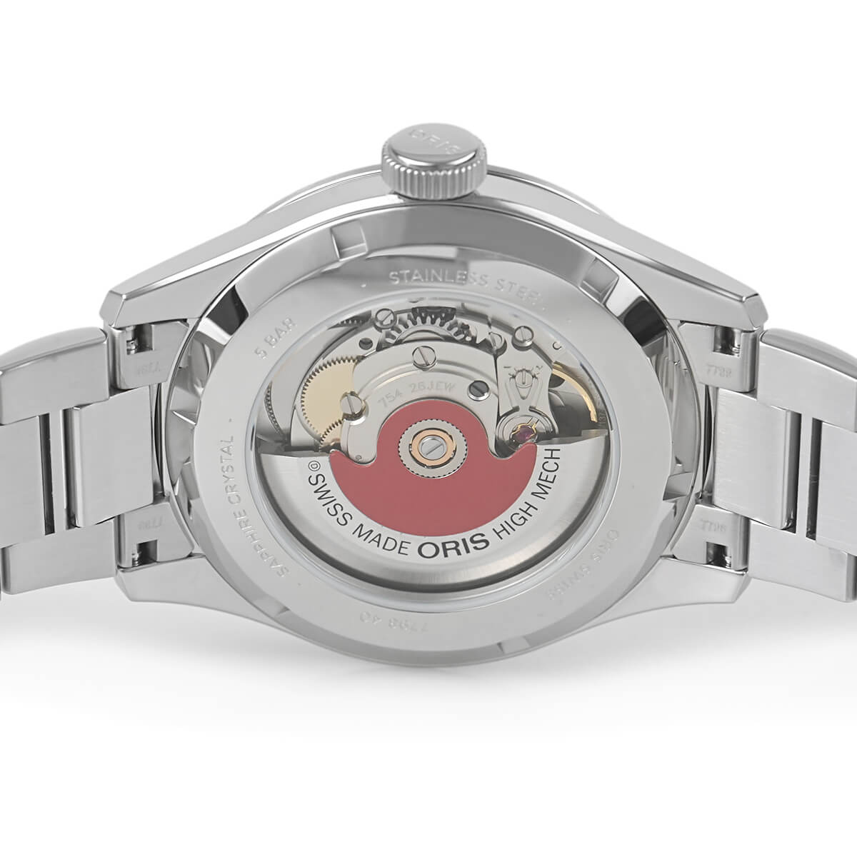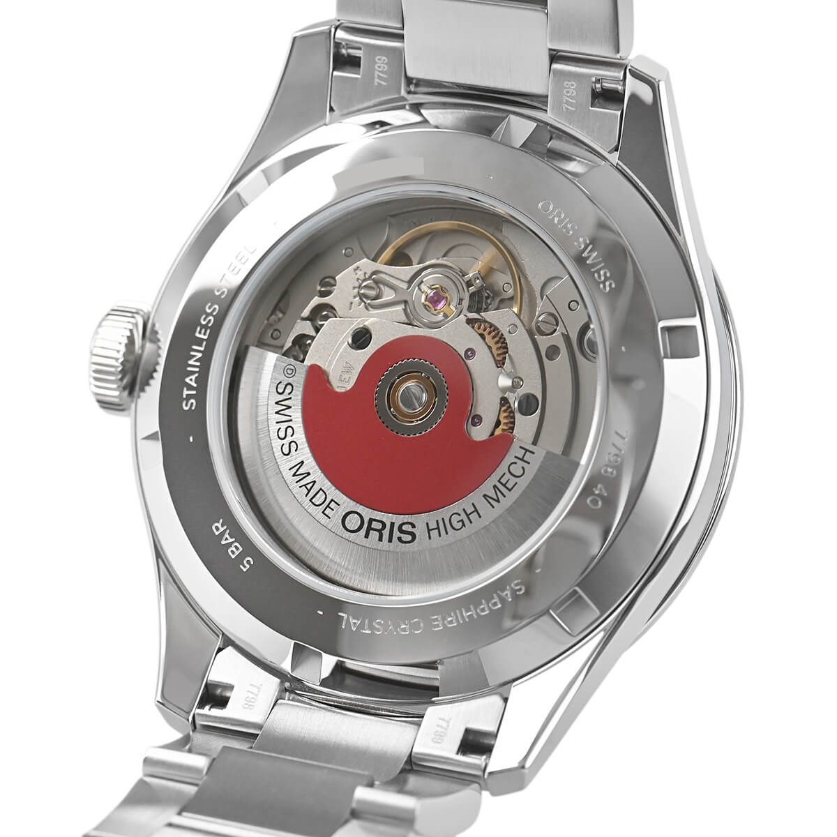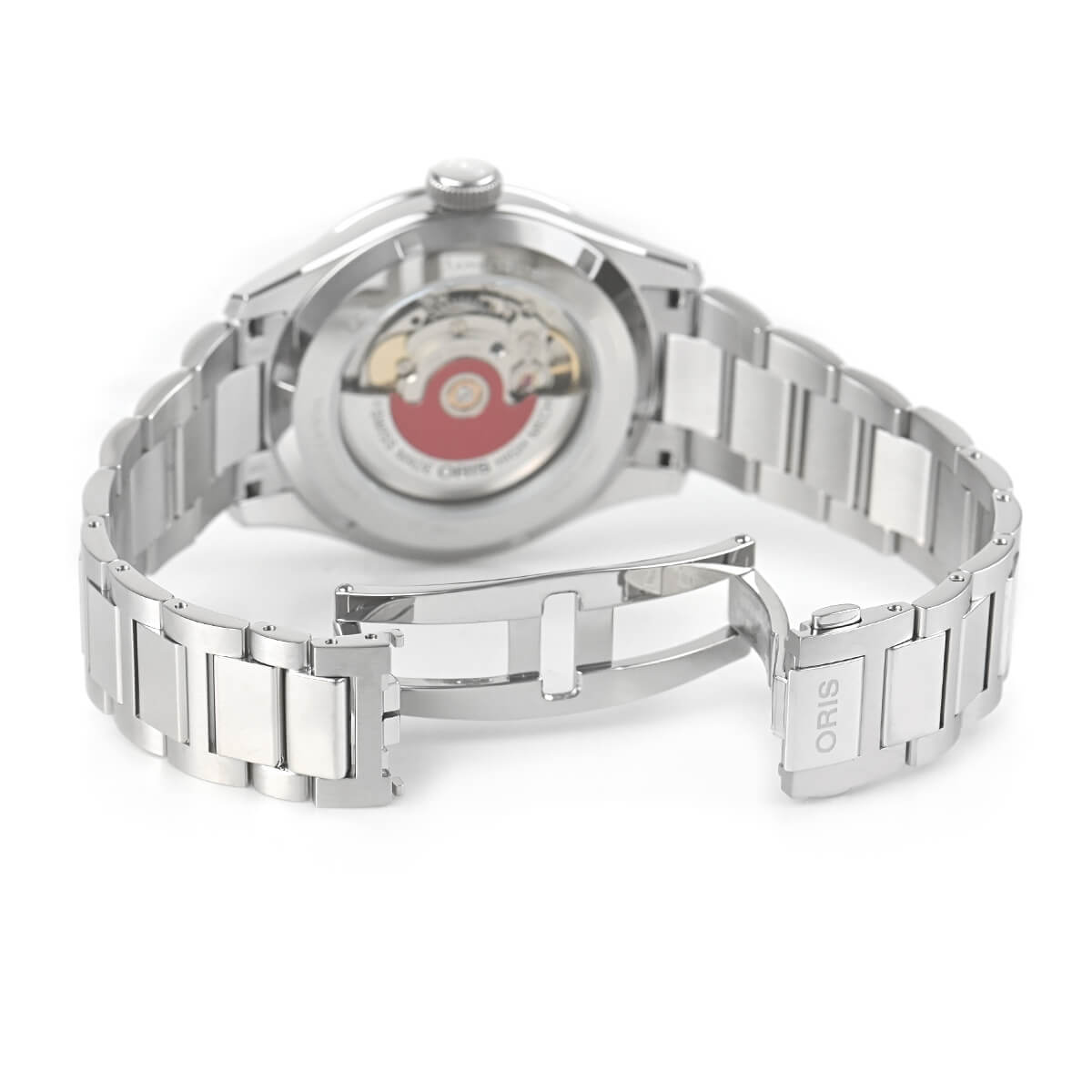 オリスの定番モデル「ビッグクラウン ポインターデイト」。シンプルなデザインで視認性に優れ、シースルバックからはムーブメントを眺める事が出来ます。