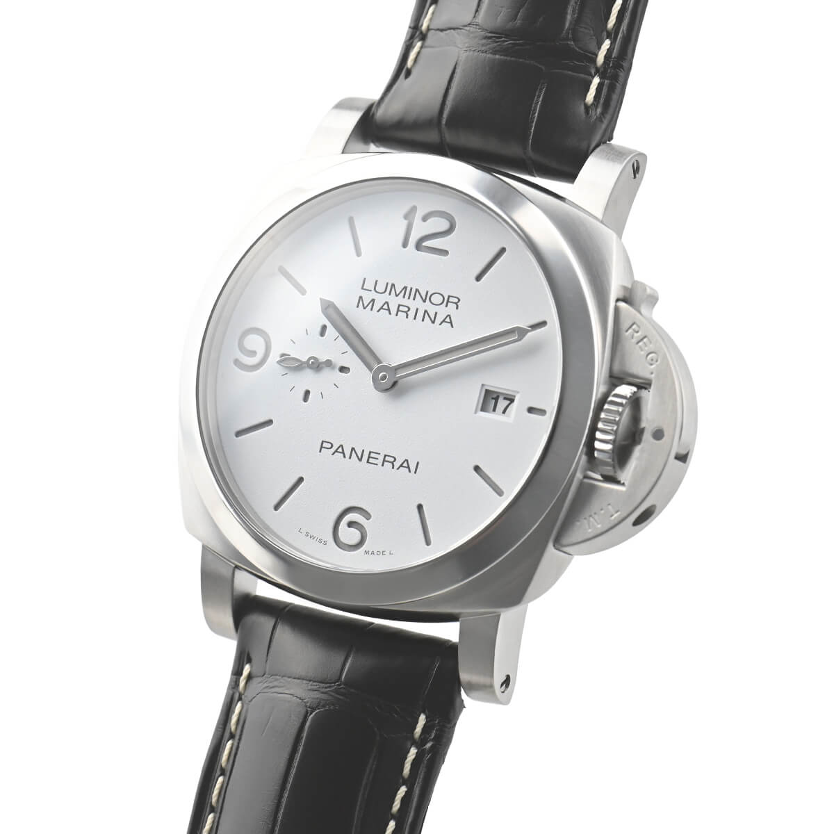 前作PAM01313から改良されたPAM03314の【ルミノールマリーナ】。こちらはホワイトダイアルが爽やかな44mmモデルです。