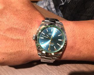 登場時グリーンの風防ガラスが話題となった「ミルガウス」の新色です。Zブルーもしくはエレトリックブルーと名づけられたこのカラーは、風防のグリーンと溶け合い、素晴らしく艶やかな表情を見せています。