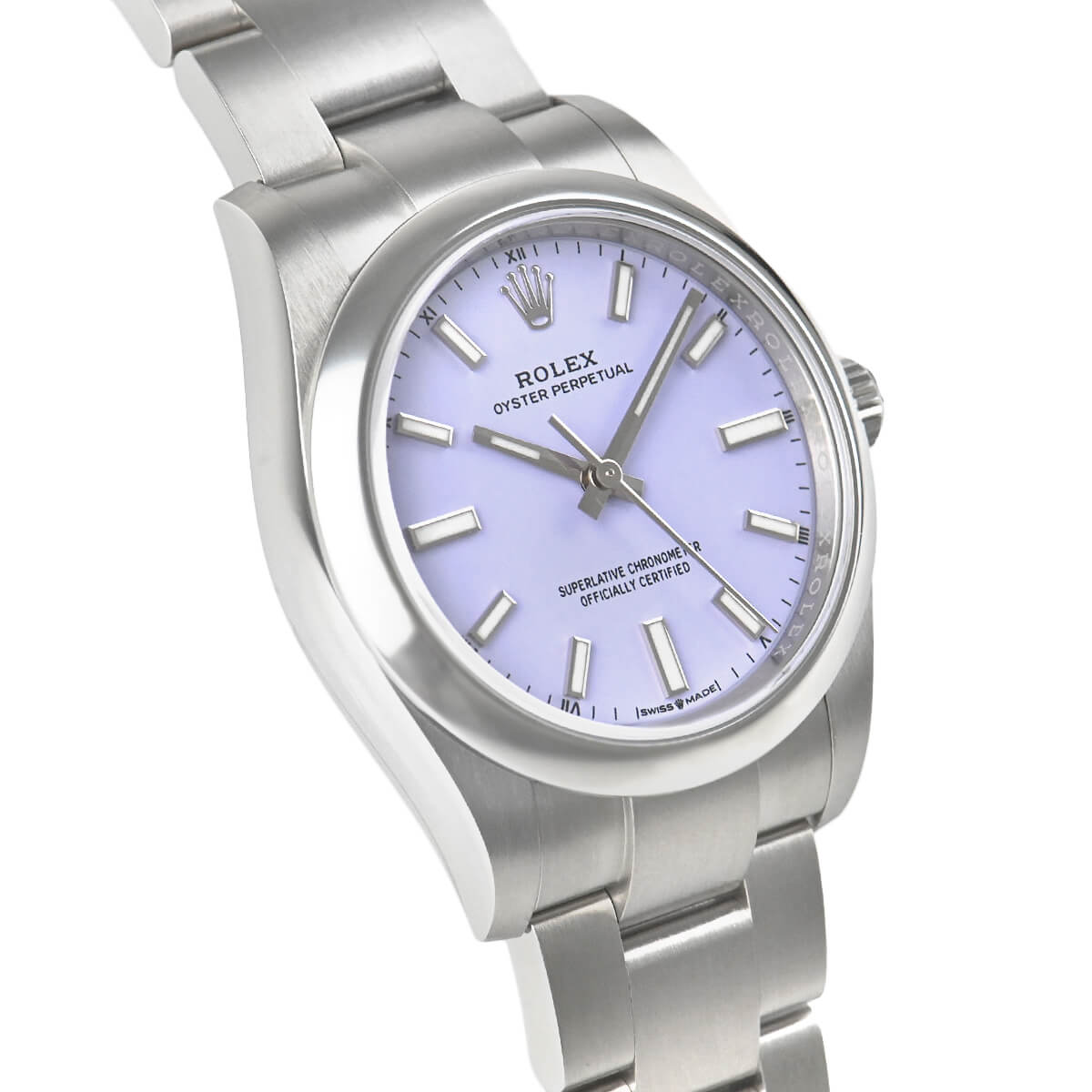 ロレックスのパイオニア精神に則り、普遍的かつ個性的なオイスターケースを採用する【124200 オイスターパーペチュアル34】。こちらはケース径34mmのサイズとなり、文字盤は美しい色合いのラベンダー/バーインデックスです。