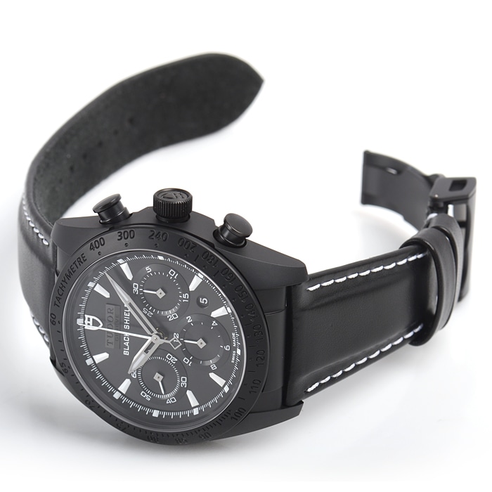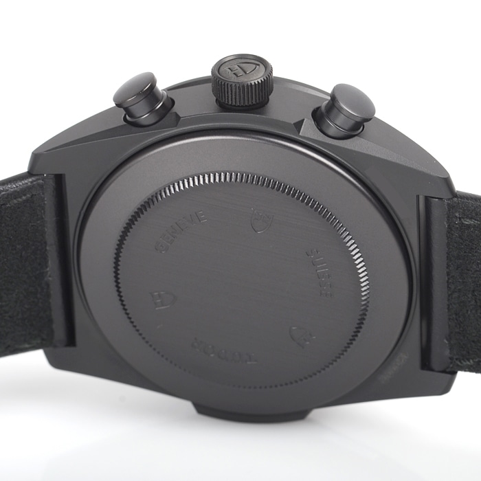 モータースポーツをイメージしてデザインされた「ファストライダークロノグラフ」。ドゥカティとコラボレートして製作されたモデルで、ケースの9時位置サイドの日付送り用のボタンは、ドゥカティのロゴを模してデザインされています。