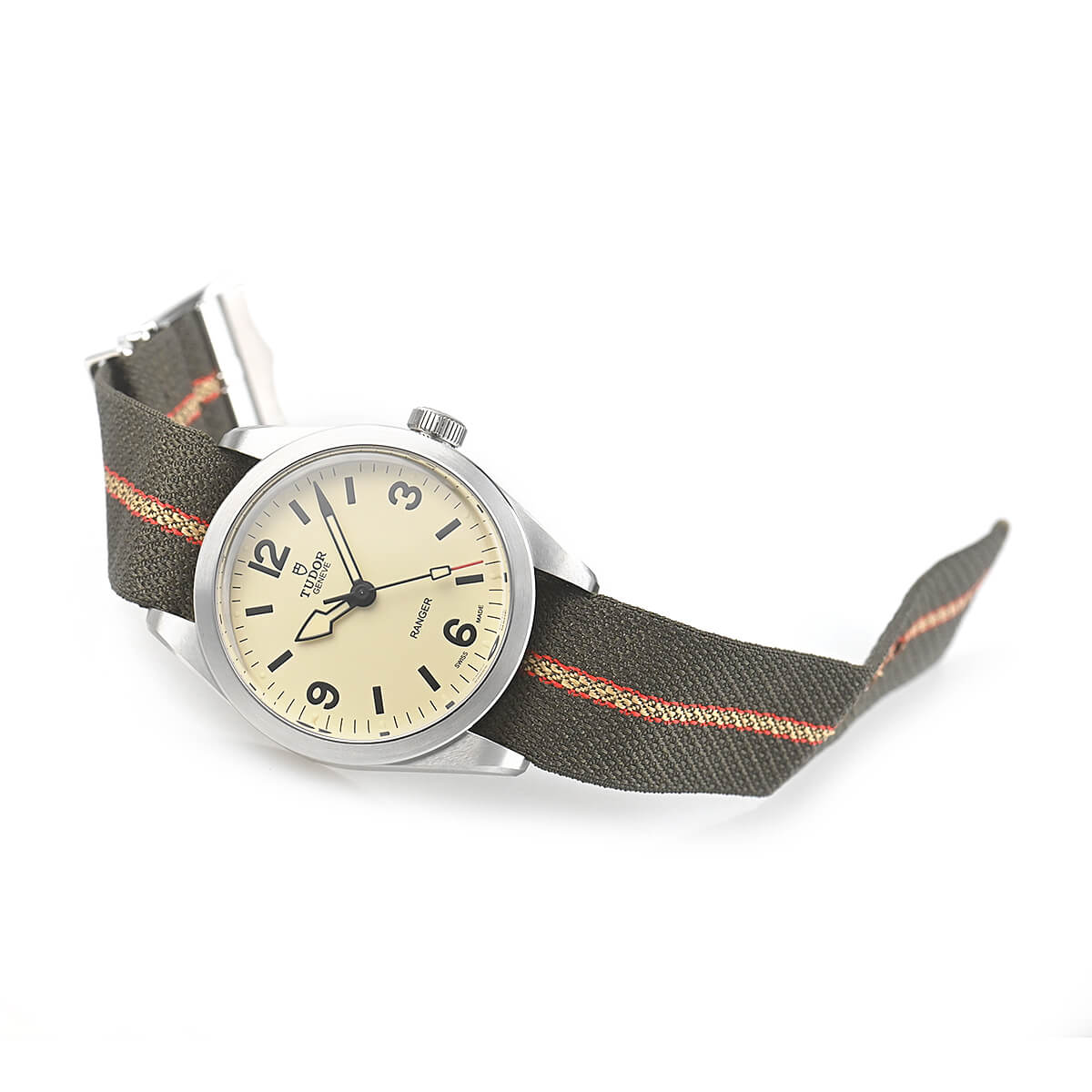 1960年代に開発され、探検隊員などが過酷な環境下で時刻を知るために用いたツールウォッチ(Ref.7995)が元祖となる、特殊部隊や訓練された隊員を意味する、チューダーの『レンジャー RANGER』。こちらは2025年発売のベージュ文字盤のモデル。チューダーを代表するレンジャーのモデルです。
