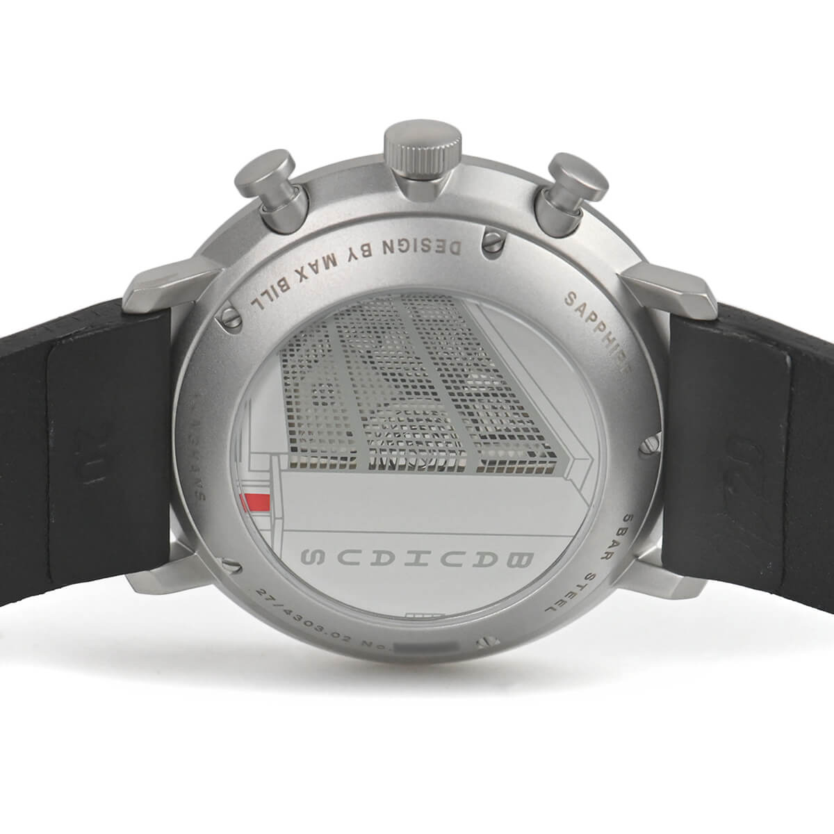 こちらの【マックスビル・クロノスコープ】は”バウハウス最後の巨匠”と言われたマックス・ビルがユンハンスの為に1962年にデザインした時計をもとに再現したシリーズのクロノグラフモデル。