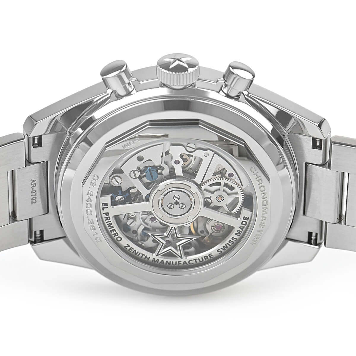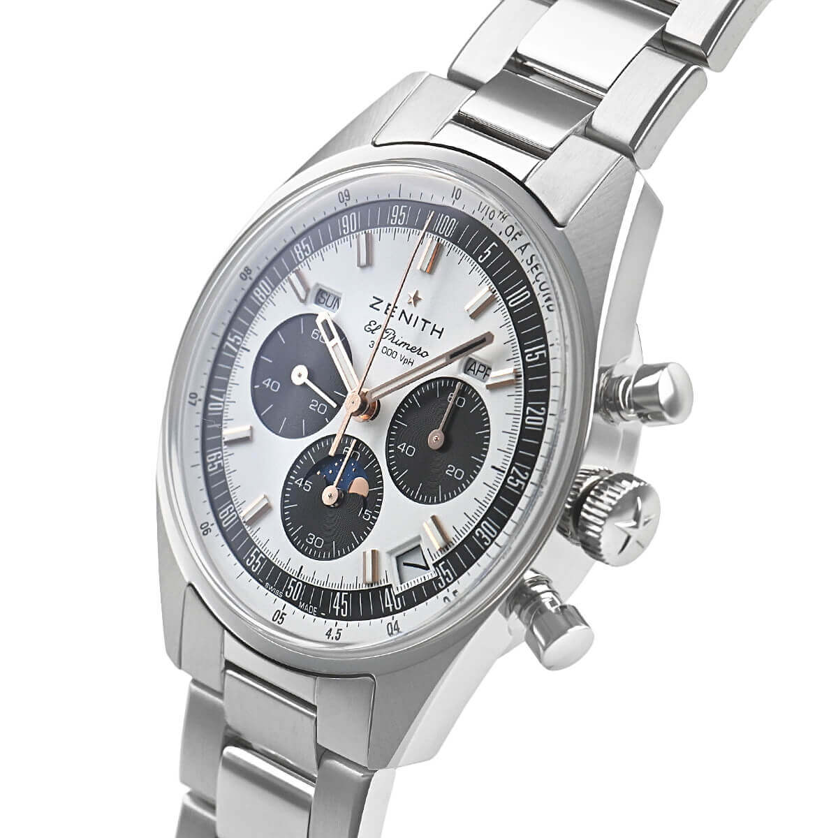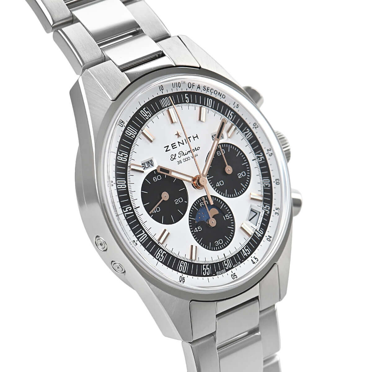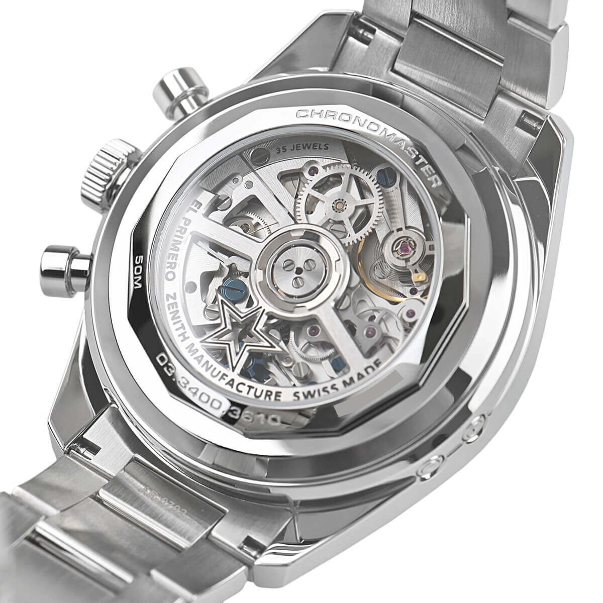 当時A386は38mmのステンレス製のケースにエル・プリメロMvを搭載しており、忠実にケースサイズも再現しております。キャリバーはEl Primero 3610 Automaticを搭載しており、1/10秒の時刻まで計測することが出来、トリプルカレンダームーン機能も搭載されております。