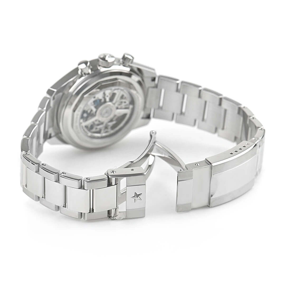 パワーリザーブは60時間を誇り現代風にアレンジされております。時計本体裏はスケルトンになっており美しいムーブメントを見ることができます。