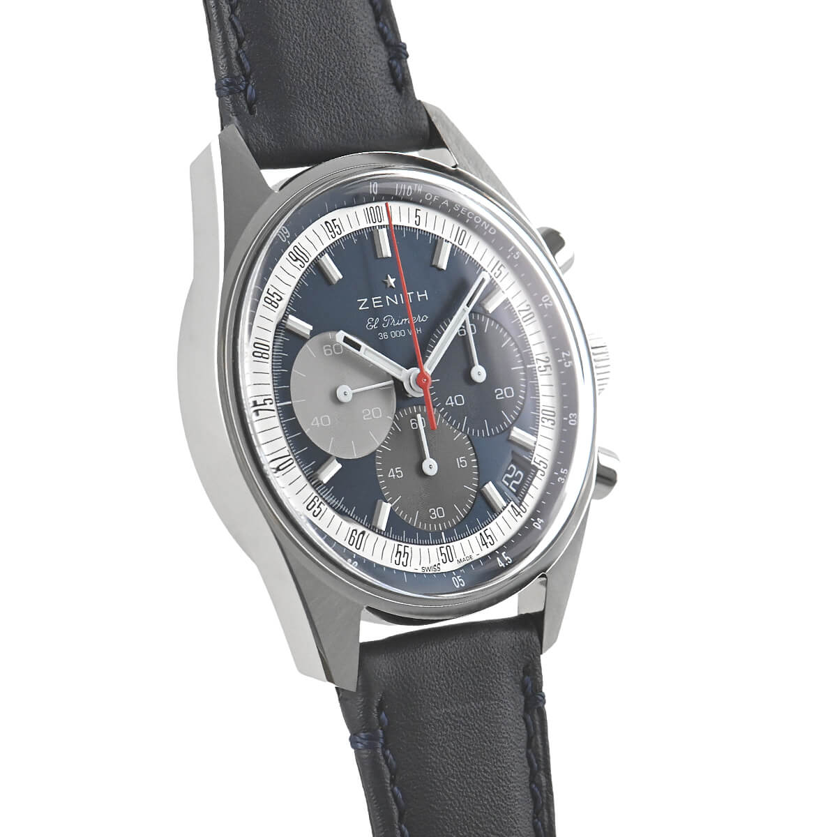 文字盤はアイコニックな3色文字盤を採用。一目でゼニスと判る唯一無二のデザインが魅力の一つでしょう。