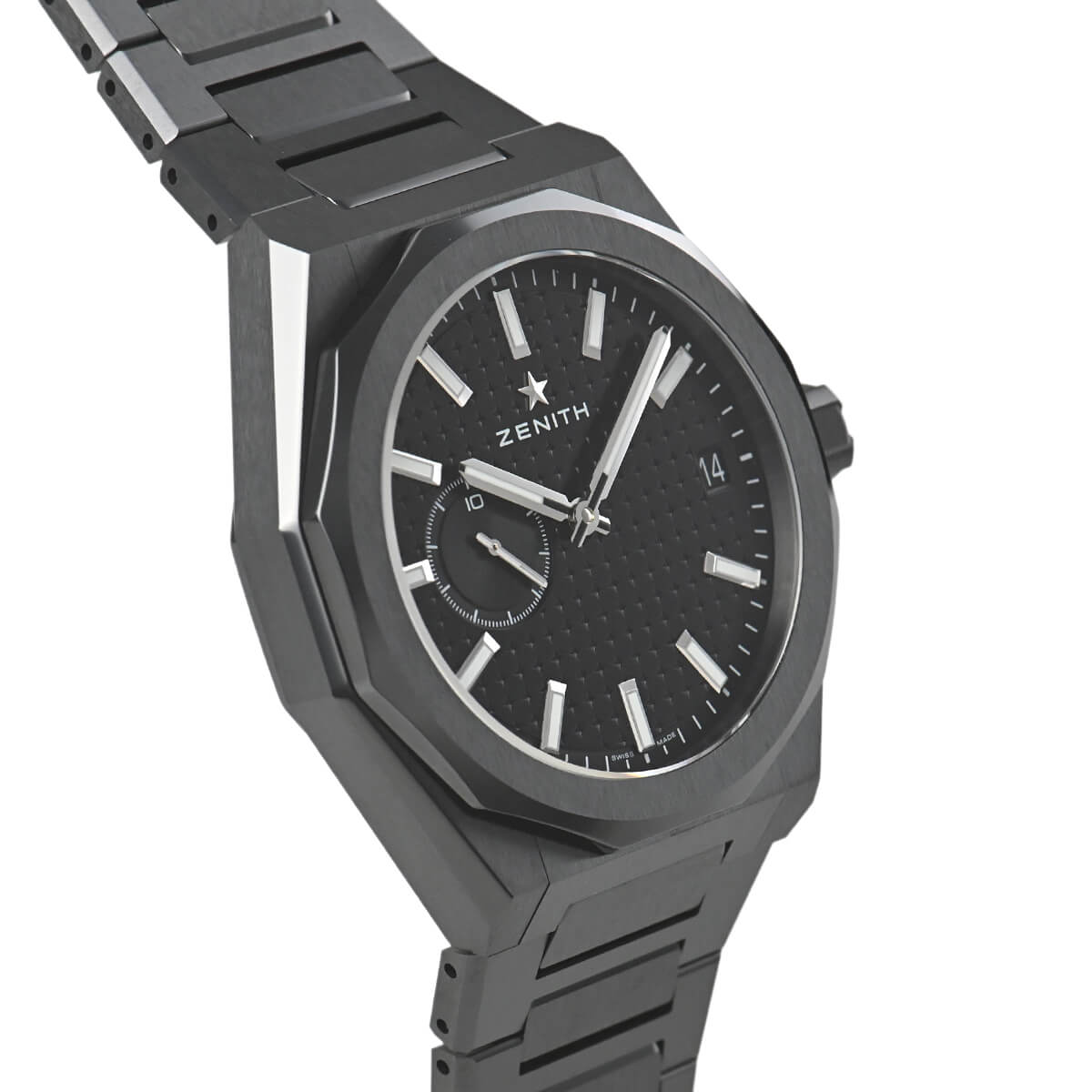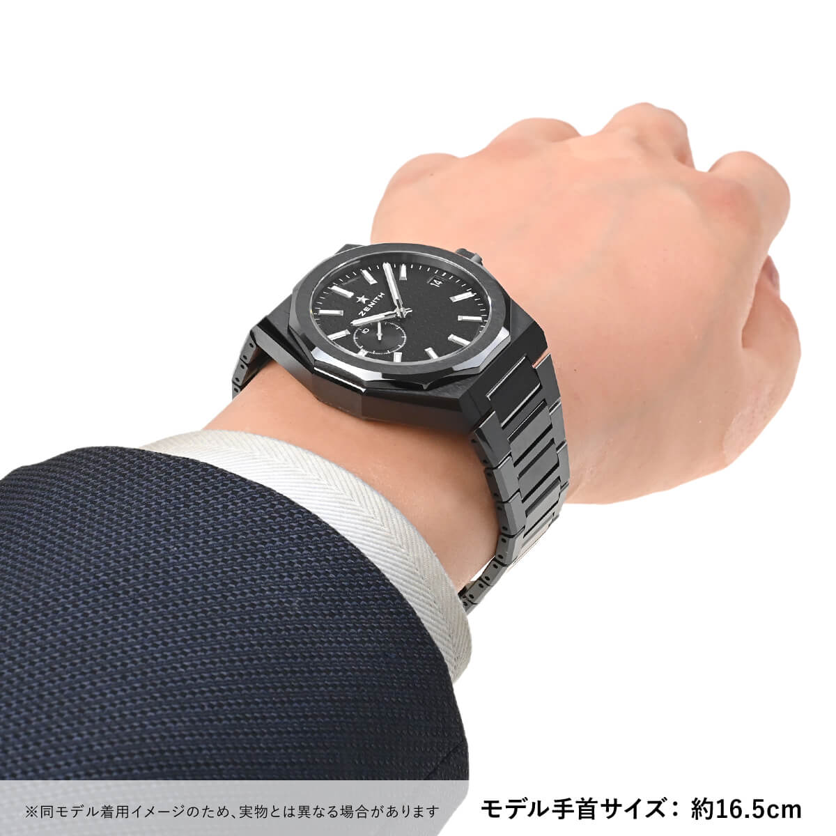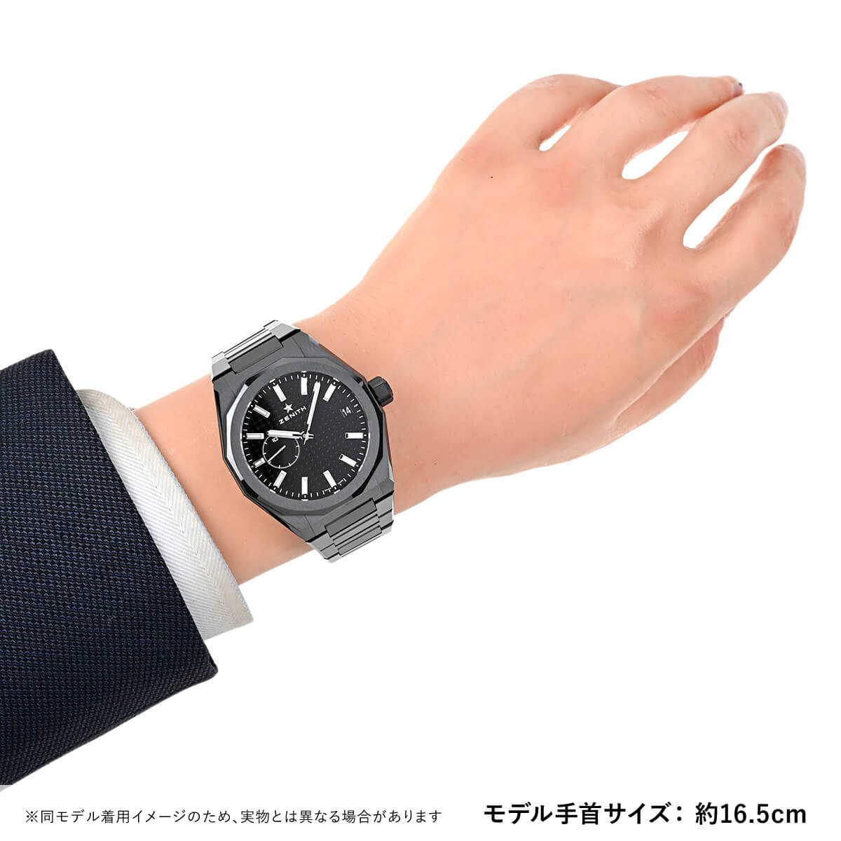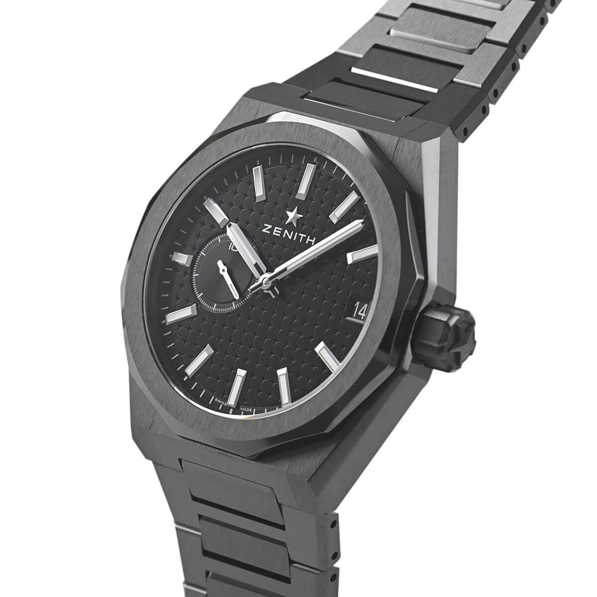 1865年の創設以来、150年以上も高い技術力で高精度の時計を生産し続けるスイスの名門マニュファクチュール「ゼニス」。歴史と伝統あふれるゼニスの理念を、自ら「THE FUTURE OF TRADITION」をテーマに、斬新なスタイルで覆したのがデファイ(反抗・立ち向かうの意味)コレクションです。八角形のブラックセラミックケースを使用し、ブラックトーンのサンバースト仕上げを施した文字盤にはゼニスの象徴である4つの点を結んだ星を復刻させてあしらっています。