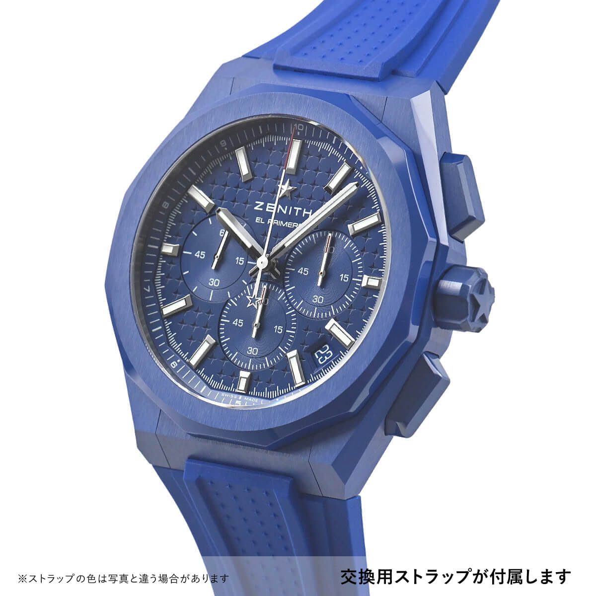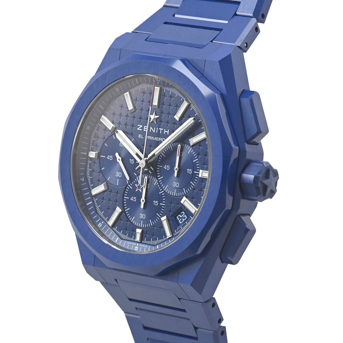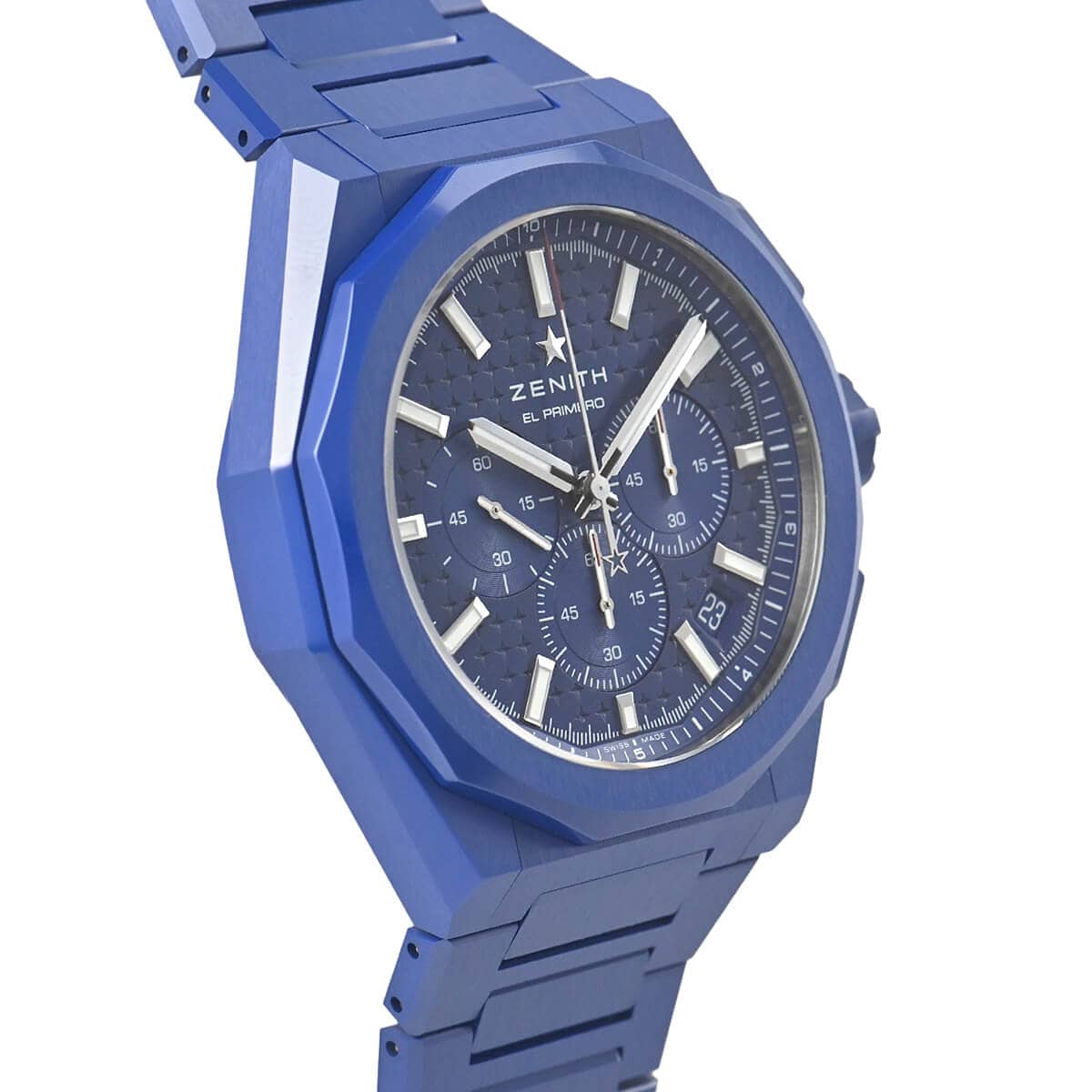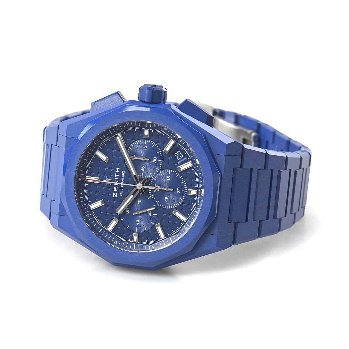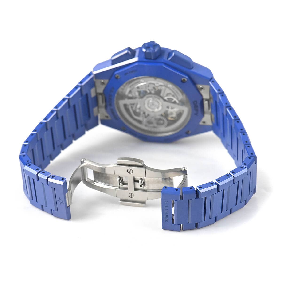見事にブルー一色に統一されておりますが、ブルーのような発色の良いカラーを安定してセラミックで再現するのは非常に難しく、色ムラが出やすいことから多くのブランドが避けてきた分野でもあります。技術力を持つゼニスならではですね。
