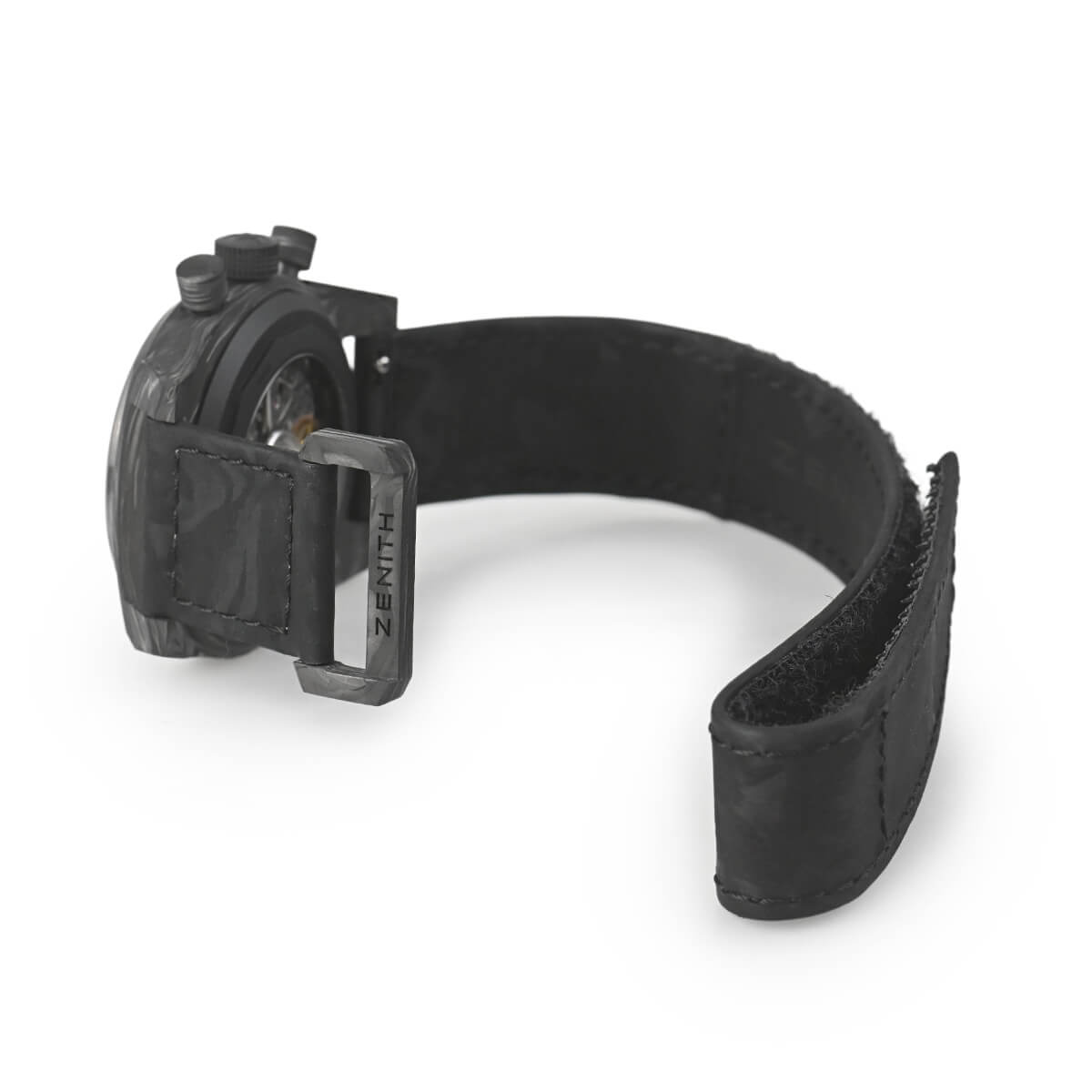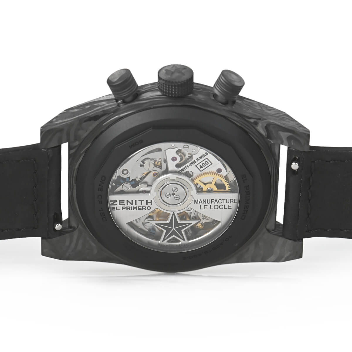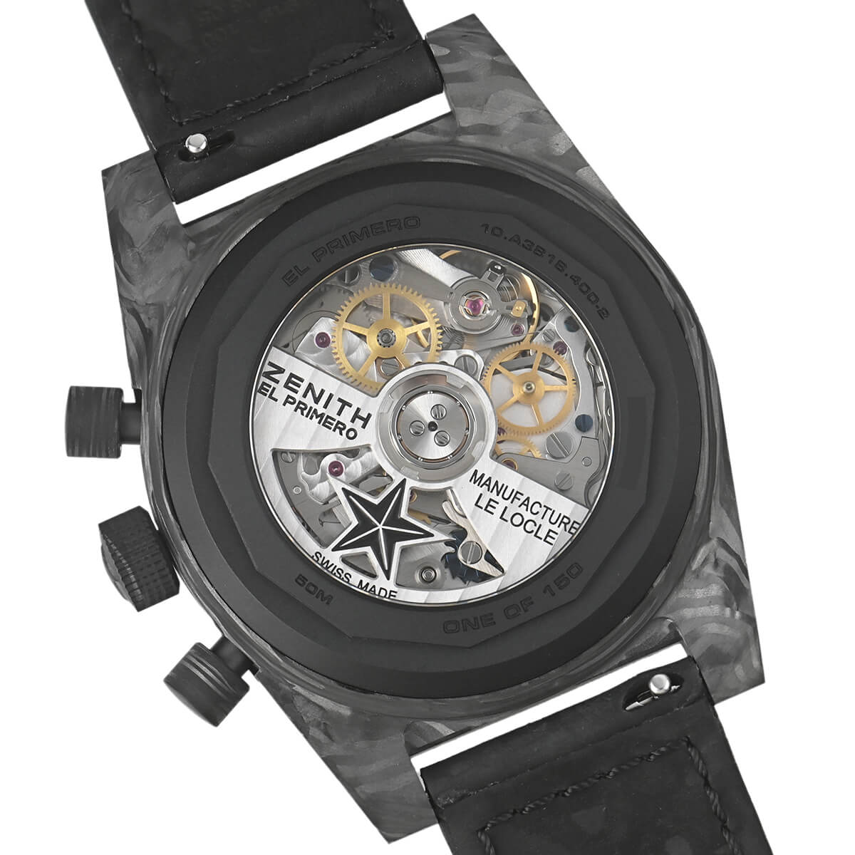 リアルカーボンファイバーで作られた文字盤も、A3818の特徴である“シャークトゥース”の目盛りとタキメーター&パルスメータースケールをこれまで同様に備えています。パルスメータースケールは最初の15秒、タキメーター表示は残りの45秒から読み取ることができます。世界限定150本ですので探されている方はお早めにどうぞ。