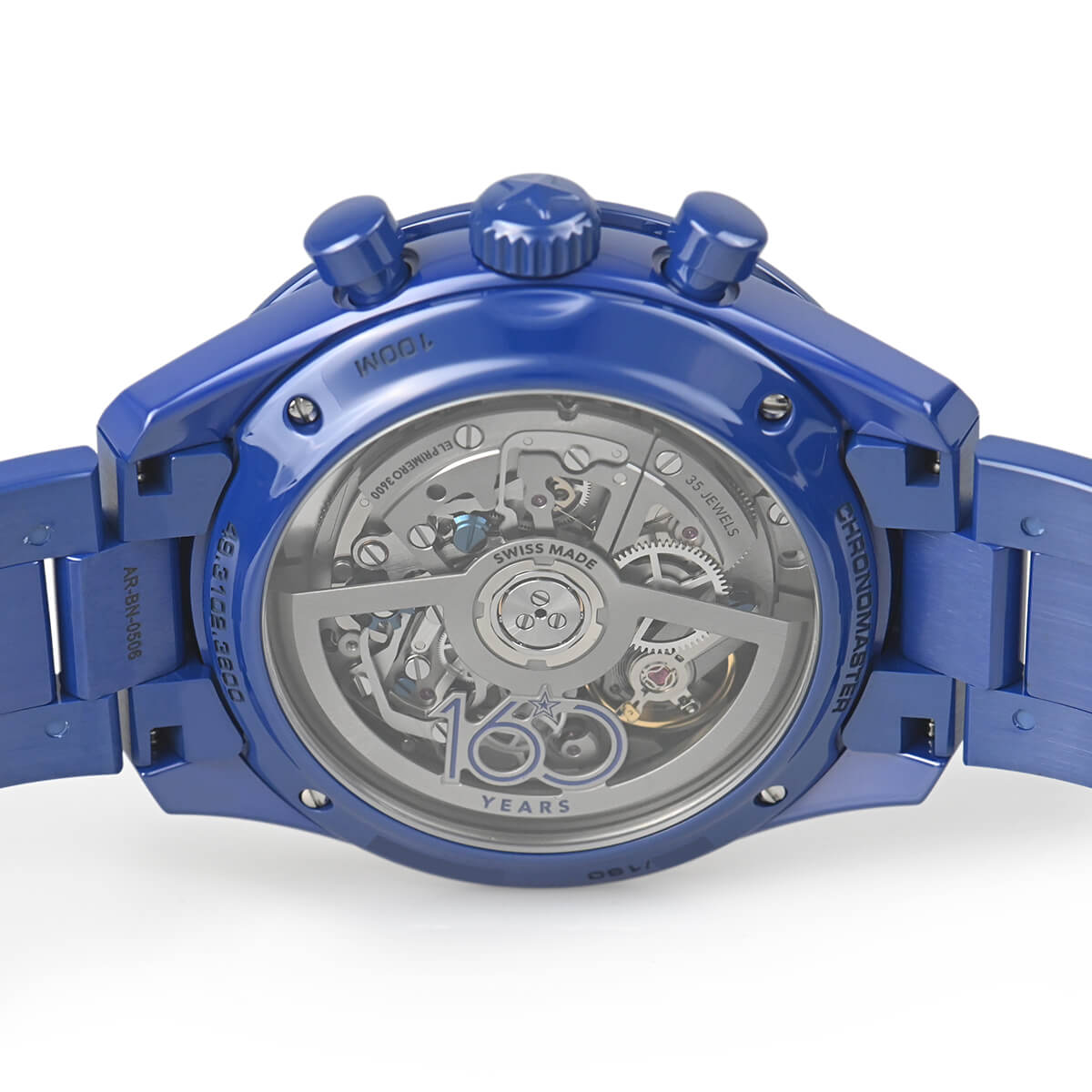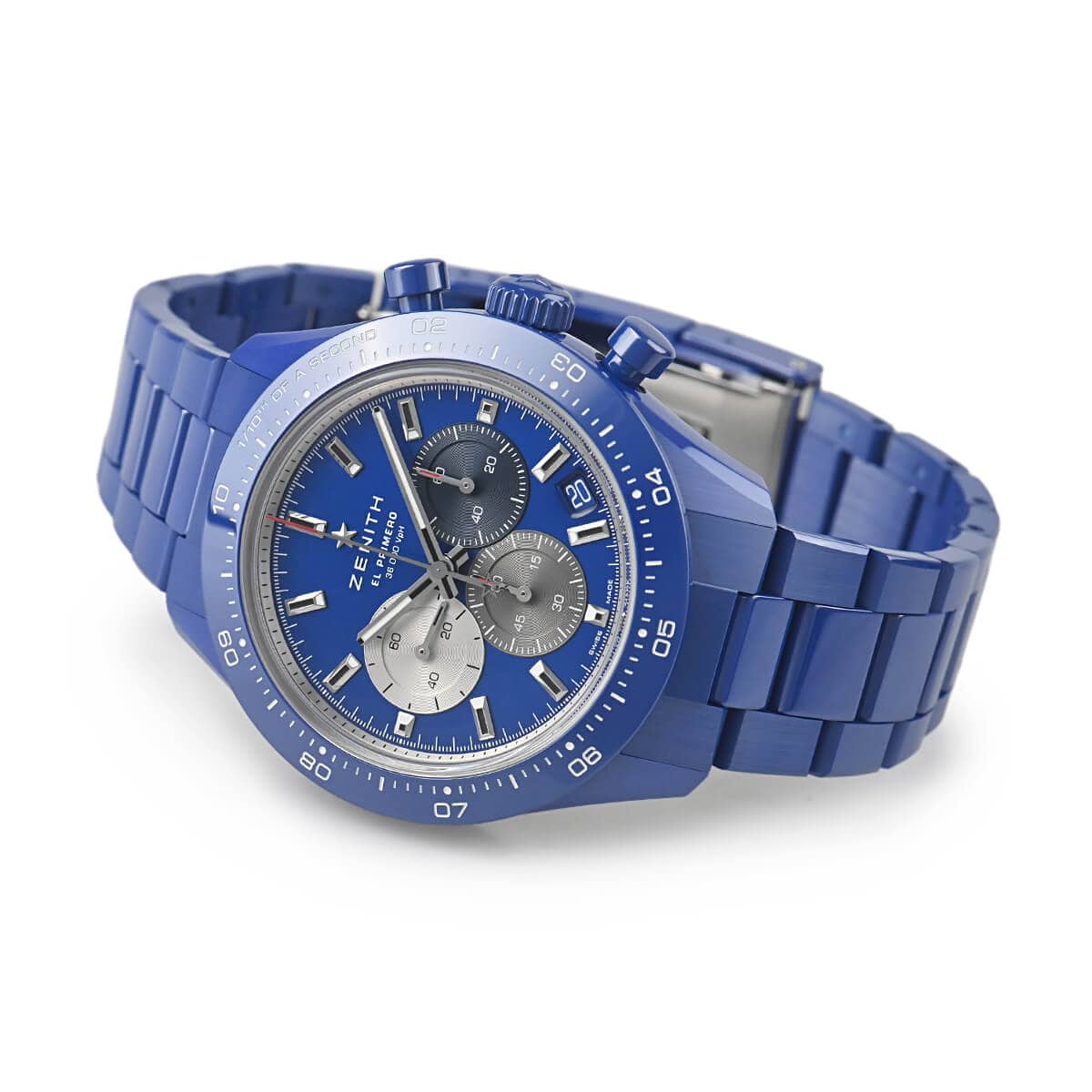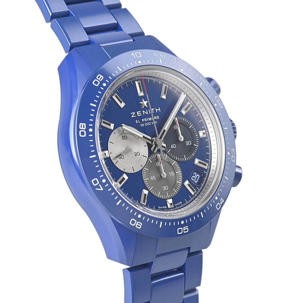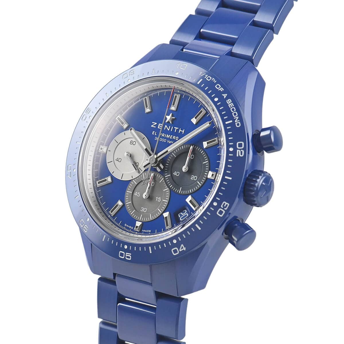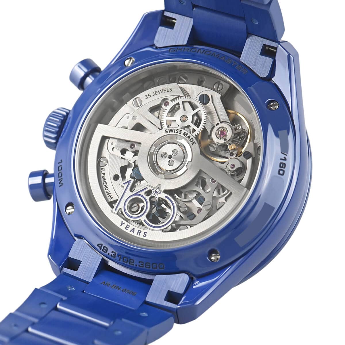 2025年発売の創業160周年を記念してメゾンのシグネチャーカラーであるブルーのモノクロームで再解釈した特別な3つのモデルが各160本限定生産で展開しています。「クロノマスター スポーツ」、「デファイ スカイライン クロノグラフ」、「パイロット ビッグデイト フライバック」がブルーセラミック製で登場です。シースルーバックから覗くムーブメントにはゼニスが誇る10振動ムーブメントのエル・プリメロを搭載し、1/10秒単位の高精度な計測を可能としています。